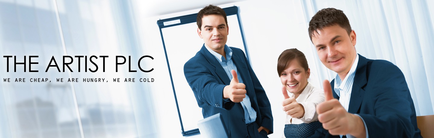 First precipitated by, then incubated within, the cosy womb of Conservative arts policy, The Artist plc is proud to adopt its position as an existential signpost for other art makers and creatives. Through extensive market research we have developed a restructured model of artistic subjectivity, one in which she or he operates, in effect, as a small-scale company. By disregarding the artist as a psychological entity; we present a mode of artistic being that is significantly more steady and confident of its place in the global economy than the fickle, flexible and in flux framing of the artist that has historically manifest. In other words, we present a form of artistic identity much more akin to the stable identity of a corporation.